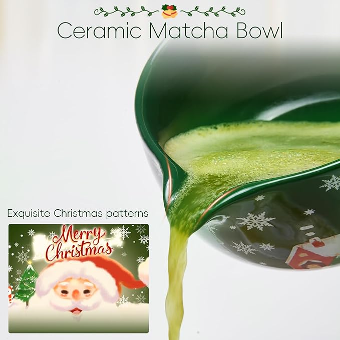 Christmas Gifts Matcha Whisk Set, Ceramic Matcha Set Includes Bowl & Holder, Bamboo Whisk (Chasen), Scoop, Spoon and Sifter, 6PCS Matcha Kit Covers Everything Needed for Making Matcha