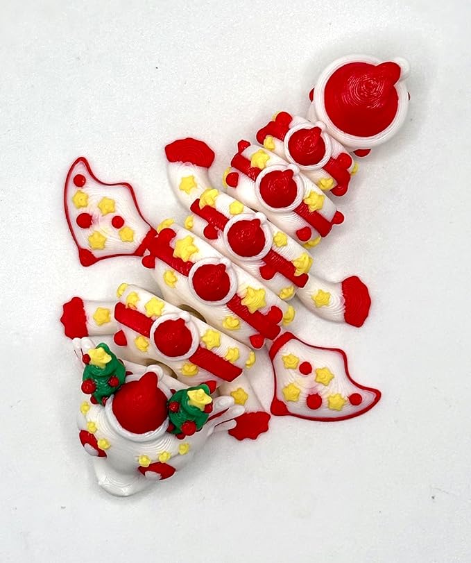 Fidget Toy Dragon Egg Santa Hat Container with Flexible Articulated Christmas Dragon, 3D Printed, Birthday Gift, Christmas Holiday Present, Stocking Stuffer, Easter Basket Filler
